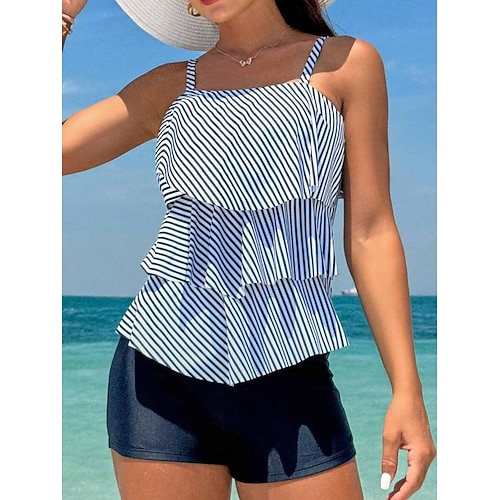 WOMEN'S TANKINI 2 PEZZI COSTUME DA BAGNO ALTA VITA RICAMATA SENZA SCHIENA VACANZA AL MARE STAMPA GRAFICA STRISCIATA COLLETTO A V SENZA MANICHE