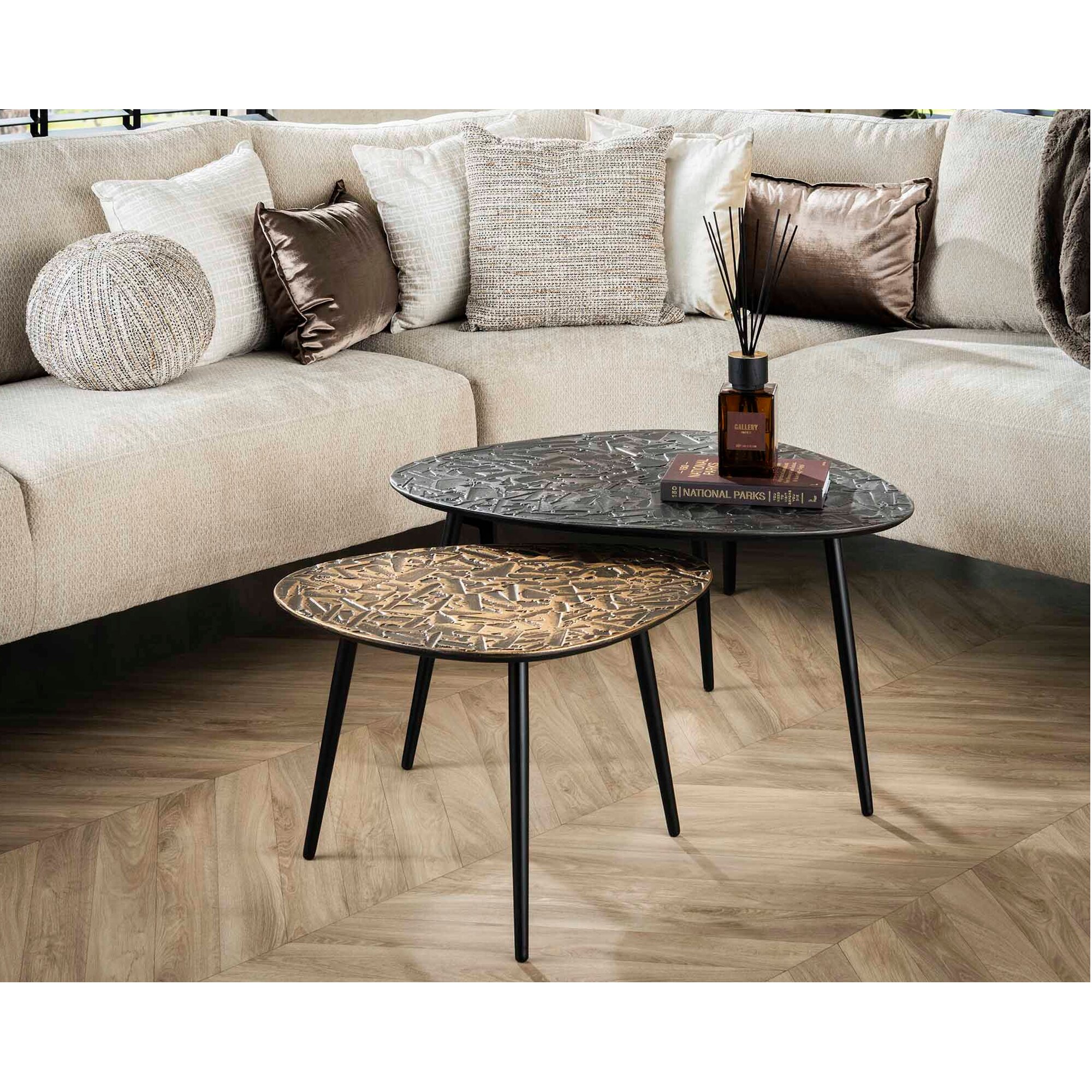 designline »Patina Metal« Couchtisch 2er-Set dreieckig Silber und Gold