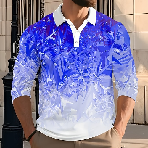 Per uomo Astratto Geometrico Polo Manica Lunga Magliette polo Bavero Casual All'aperto Streetwear Athleisure Abbigliamento quotidiano Stampa 3D Bottoni Primavera Autunno Inverno Blu 1 Blu Viola