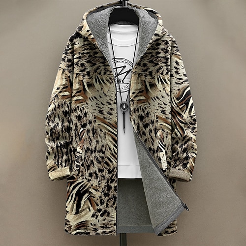 Per uomo Geometrico Cappotto Invernale Giacca in Pile Cappotto Calore Termico Confortevole Casual Abbigliamento quotidiano Cerniera Tasca Stampa 3D Autunno Inverno Con Cappuccio Manica Lunga Bianco