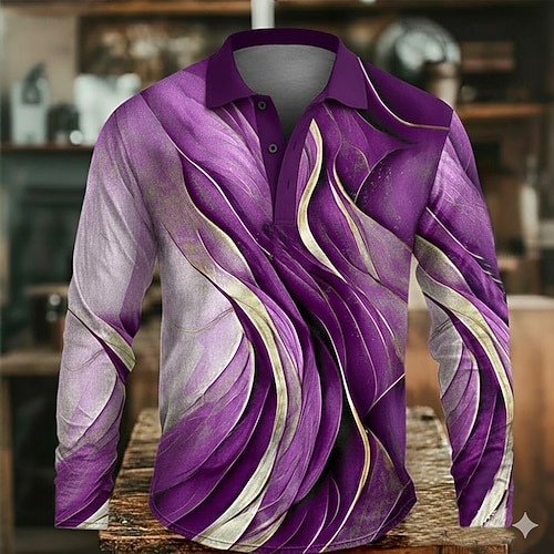 Per uomo Geometrico Marmo Polo Manica Lunga Magliette polo Bavero Casual Athleisure Abbigliamento quotidiano Stampa 3D Bottoni Primavera Autunno Inverno Blu Viola Verde
