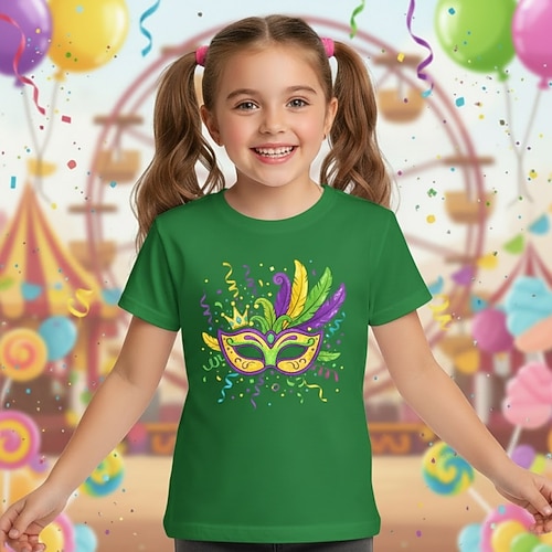 100% Cotone Carnevale di Martedì Grasso 2026 Bambini Ragazze Blu Nero Bianco Grafico Maschera Maglietta Girocollo Manica Corta Vacanza Sport Outdoor Abbigliamento Quotidiano Attivo Vacanza Casual