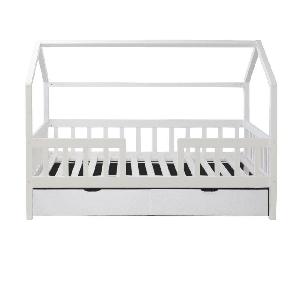 Letto casetta con Ringhiera + 2 cassetti legno bianco 90x190cm