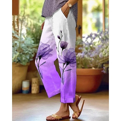 Per donna Finto cotone e lino Pantaloni Leggero Casual Lunghezza intera Vita media Floreale Grafico Coulisse Tasca Traspirabilità Confortevole Inelastico Casual Quotidiano Weekend Bianco Rosa Verde