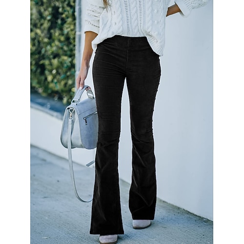 Per donna Pantaloni a Zampa Moda Streetwear Casual Lunghezza intera Vita Alta Semplice Tasca Fascia Elastica Comodo Comodità Morbido Elasticizzato All'aperto Streetwear Nero Rosa Rosso Marrone