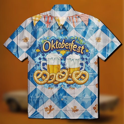 bavarese Monaco Tedesco Camicie Hawaii Camicia Aloha Birra Pretzel Grafico per Per uomo Adulti Stampa 3D per Carnevale Birra Oktoberfest Vacanza Feste
