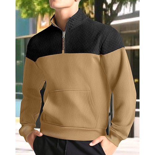 Per uomo Polo Polo con zip a un quarto Vacanza Streetwear Zip a un quarto Manica Lunga Moda Essenziale Blocco di colori Patchwork Tasca Primavera Autunno Vestibilità su misura Nero Verde militare Blu