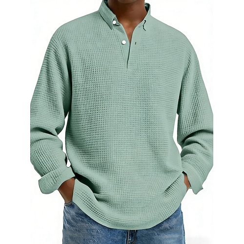 Per uomo Polo a nido d'ape Polo con bottoni Informale Sport Bavero Manica lunga Di tendenza Essenziale Liscio Pulsante Primavera Autunno Standard Verde militare Arancione Cachi Grigio chiaro Polo a