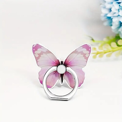 Supporto ad anello per telefono con motivo a farfalla - poggia dita in metallo con rotazione a 360° e design ad anello con manopola per una presa sicura