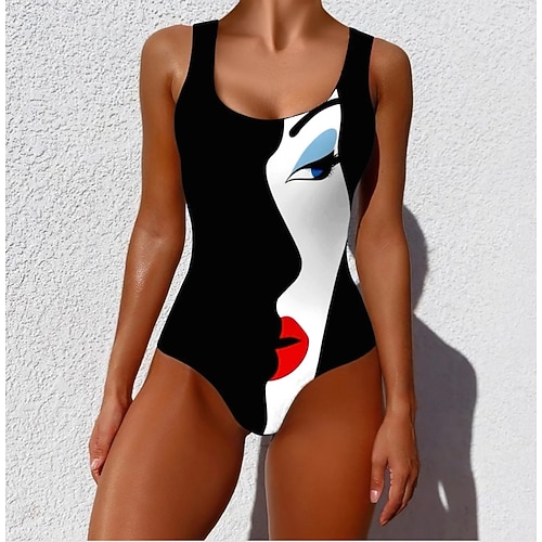 Costume da bagno intero da donna Slimming Monokini Slip Controllo Pancia Vita Alta Slim Schiena Nuda Vacanza Vintage Ombre Grafico Collo a U Senza Maniche