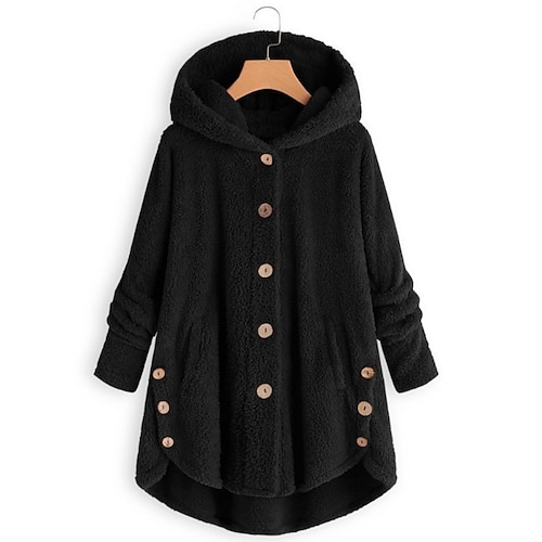 Per donna Giacca Sherpa Giacca con Cappuccio Confortevole Traspirante Tasca Bottoni Moda Casual Semplice Vacanza Streetwear Casuale Abbigliamento quotidiano Monopetto Regolare Con Cappuccio