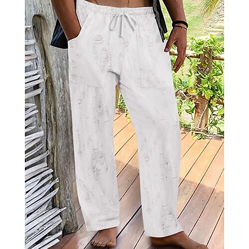 Per uomo Pantaloni Pantaloni Estivi Pantaloni da Spiaggia Tasca Frontale Gamba Dritta Semplice Comodità Traspirante Casuale Quotidiano Ferie Moda Essenziale Nero Bianco