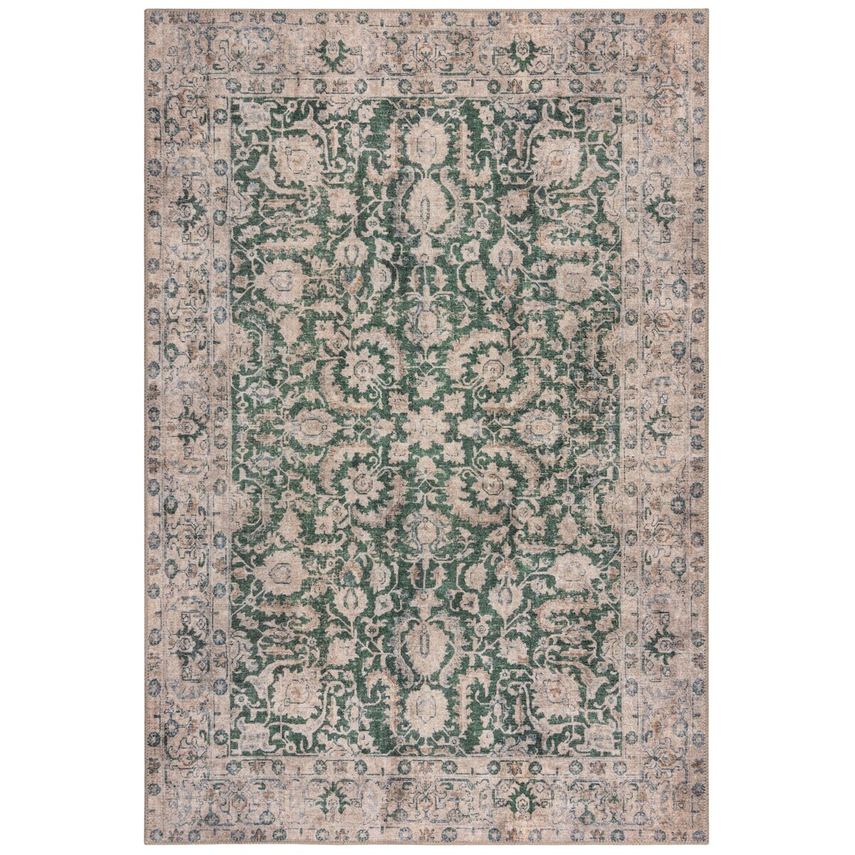 KADIMA DESIGN Flachgewebe Teppich Grün Vintage Floral waschbar für Wohnbereich und Schlafbereich | 190x290cm