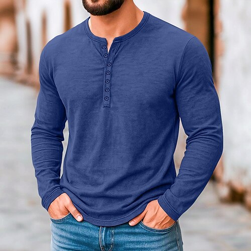 Per uomo Sfumatura Vintage Maglia Henley Maglietta Manica Lunga Retrò Vintage Casual Casuale Primavera Autunno Tutte le stagioni Grigio Blu Viola Arancione Henley Maglietta Henley
