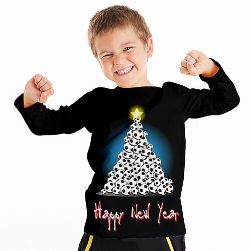 Da ragazzo 3D Babbo Natale Calcio T-shirt Camicia Manica lunga Stampa 3D Autunno Inverno Sportivo Di tendenza Streetwear Poliestere Bambino 3-12 anni Girocollo Esterno Informale Giornaliero Standard