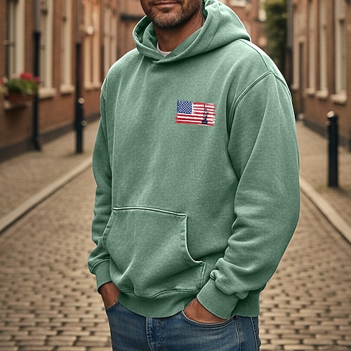 Per uomo Felpa con cappuccio Felpa con cappuccio invecchiata Nero Giallo Rosa Rosso Blu Con Cappuccio Bandiera Americana Coulisse Tasca Tasca Frontale Sport Outdoor Quotidiano Ferie Cotone