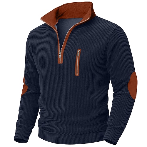 Per uomo Felpa Maglione Maglioni con zip a un quarto Maglione con zip a un quarto A Coste Maglia Top Regolari Lavorato a maglia Slim Fit Semplice Collo Alto Maglieria Contemporaneo Casuale