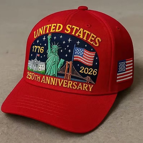 Per uomo Unisex Cappello per il 250° anniversario degli Stati Uniti Cappellino da Baseball Cappello da Sole Cappello da Camionista Nero Rosso Poliestere / Poliammide Regolabile Patriotico Vacanza