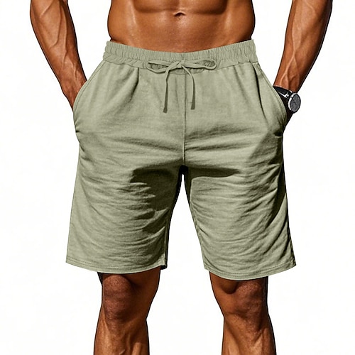 Per uomo Shorts Shorts di Lino Pantaloncini Estivi Shorts da Spiaggia Tasca Coulisse Gamba Dritta Tinta unica Comodità Traspirante Lunghezza al ginocchio All'aperto Quotidiano Spiaggia Vacanza Moda