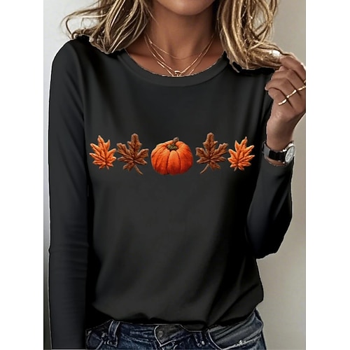 Per donna Maglietta Grafico Piante Vintage Elegante Classico Manica Lunga Girocollo Top Regolari Quotidiano Stampato Blu Nero Arancione Grigio scuro Grigio Primavera Autunno Inverno