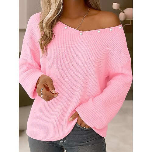 Per donna Felpa Maglione Elegante Moda Carino Scollo a V Con perline Manica Lunga Top Regolari Maglia Quotidiano Data San Valentino Nero Bianco Primavera