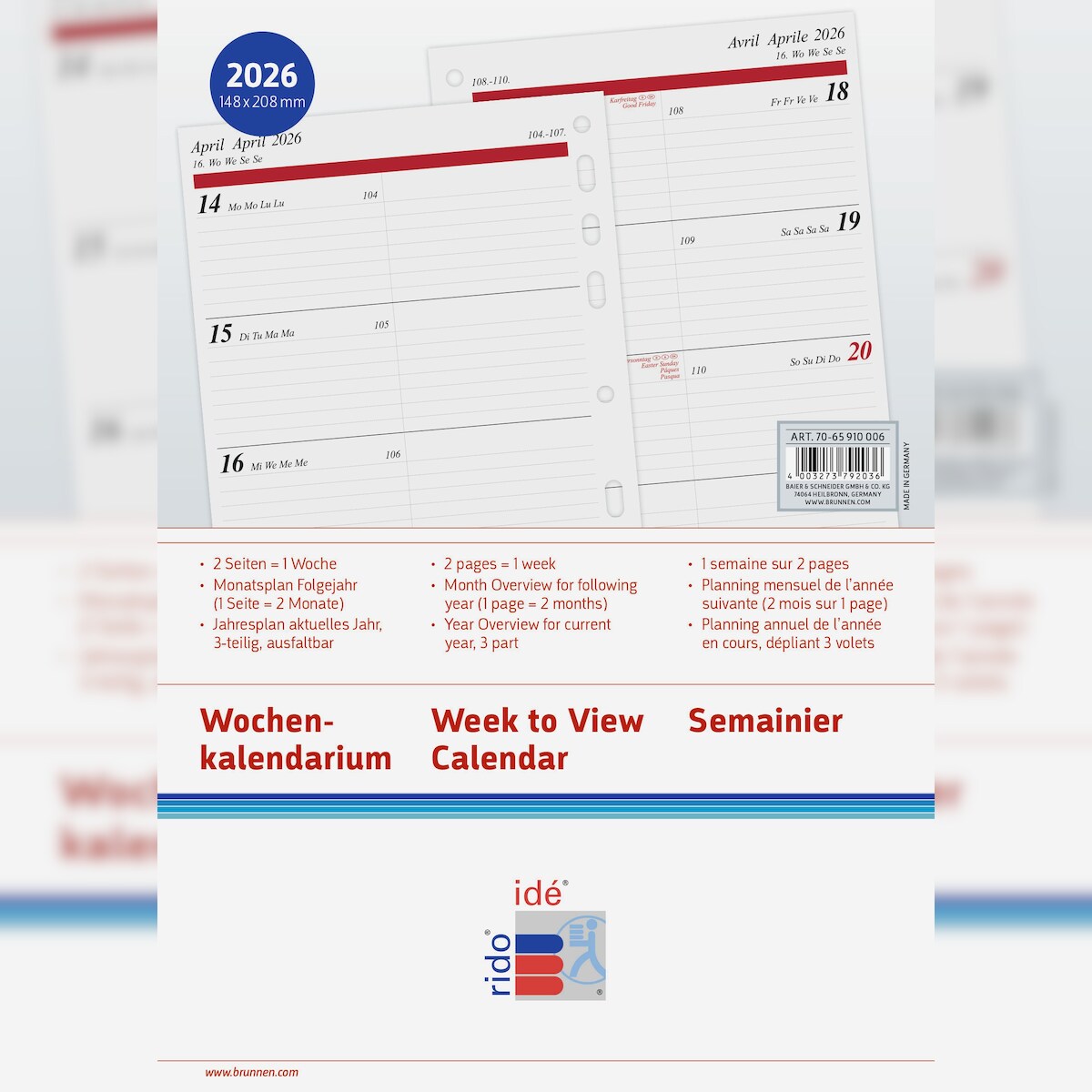 rido® idé® 70-65 910 006 Kalendarium 2026 - Timing 1, Einlage Wochenplaner - 1 Woche / 2 Seiten, 14,8 x 21 cm