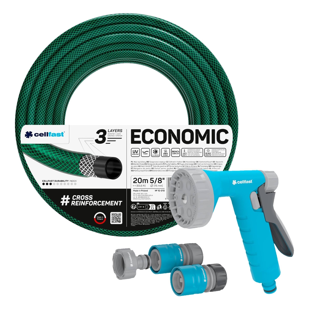 Cellfast - Gartenschlauch ECONOMIC 15mm Durchmesser, 20m Länge mit 12,5mm Handbrause