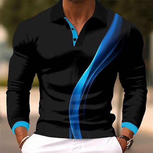 Per uomo A righe Geometrico Polo da rugby Manica Lunga Magliette polo Bavero Business Casual Athleisure Abbigliamento quotidiano Stampa 3D Bottoni Primavera Autunno Inverno Nero Bianco