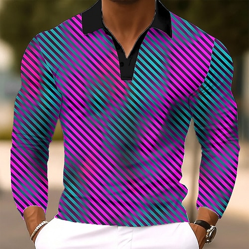 Per uomo Geometrico Linea Polo Manica Lunga Magliette polo Camicie con Colletto Business Casual Affari Athleisure Abbigliamento quotidiano Stampa 3D Bottoni Primavera Autunno Inverno Blu Viola