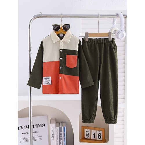2 Pezzi Bambino (1-4 anni) Ragazzi Camicia Pantaloni Vestito Lettera Manica Lunga Patchwork Impostare All'aperto Moda Quotidiano Autunno Inverno 4-7 Anni Multicolore