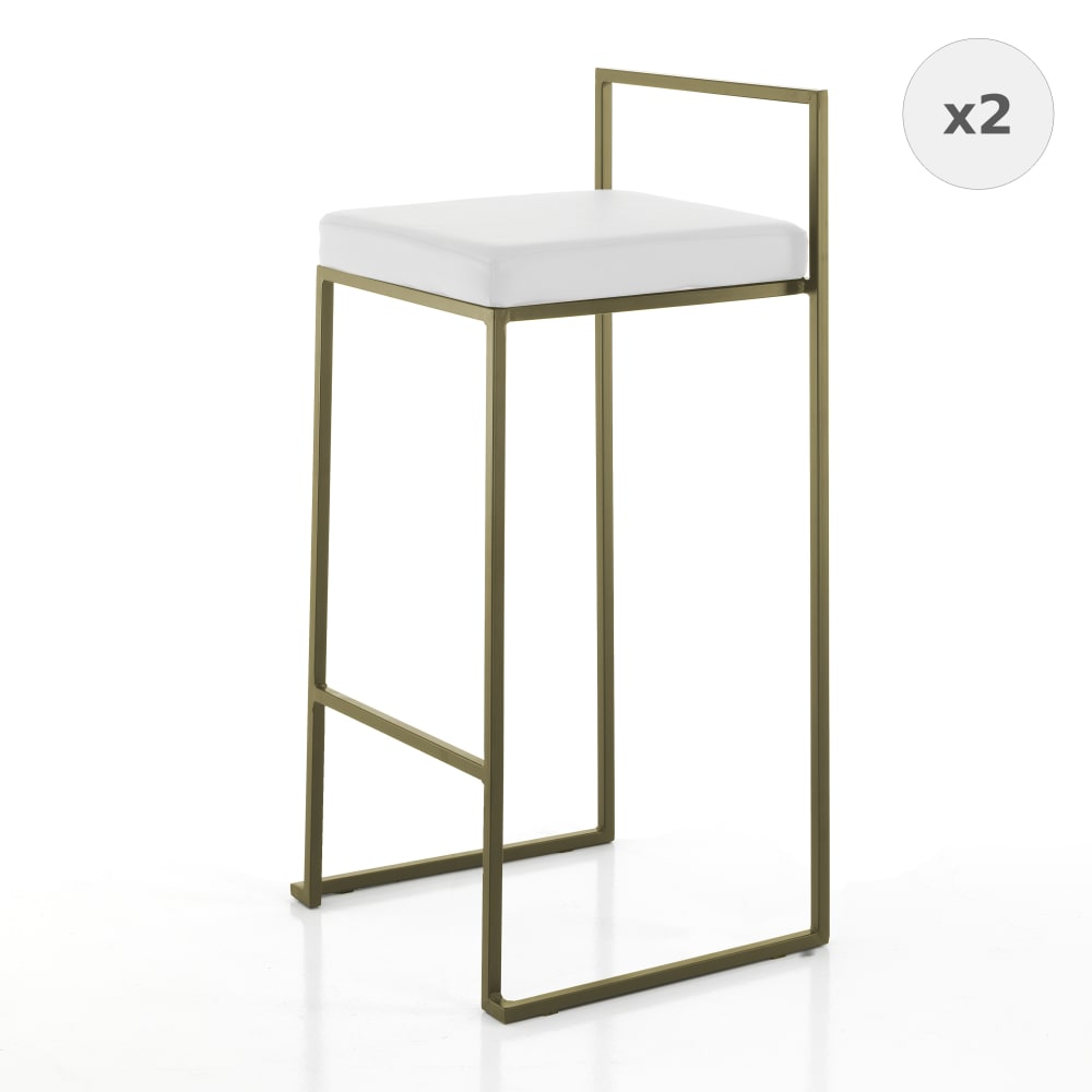 Set 2 sgabelli bianco in pelle sintetica e metallo dorato H.88 cm