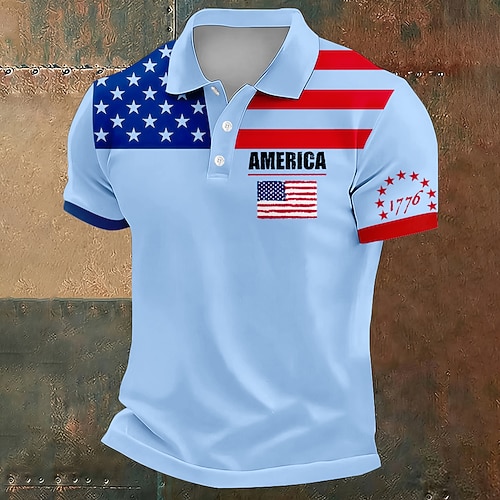 Giorno dell'Indipendenza Americana Per uomo Bandiera Americana Polo Manica Corta Magliette polo Bavero Casual Athleisure Abbigliamento quotidiano Abbigliamento da festa Stampa 3D Bottoni Estate Blu