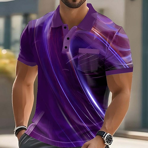 Per uomo Geometrico Linea Polo Manica Corta Magliette polo Camicie con Colletto Casual All'aperto Athleisure Abbigliamento quotidiano Stampa 3D Bottoni Estate Primavera Blu Rosso Viola