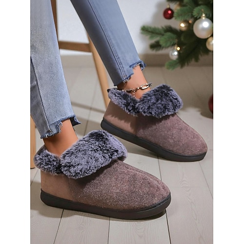 pantofole natalizie rosse da donna con pupazzo di neve stampa natalizia, calde pantofole da casa in peluche per l'inverno regalo di festa