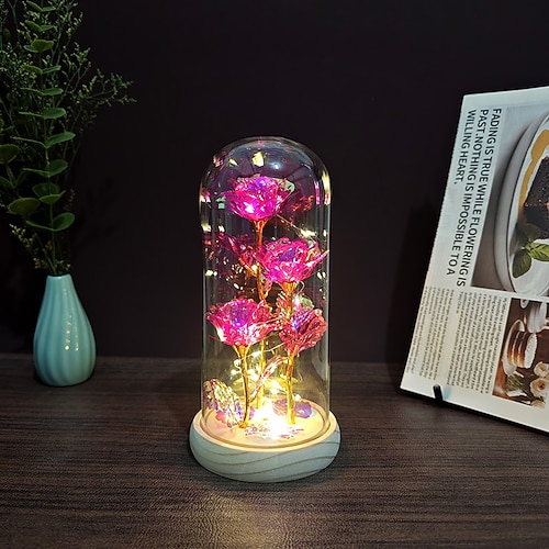 Rosa di vetro, fiore di cristallo eterno per sempre, rose luminose in una cupola di vetro, regali di San Valentino per donne, mamme, nonne, mogli e sorelle