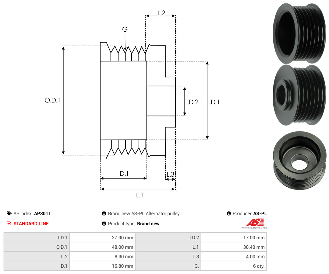 AS-PL Riemenscheibe, Generator AP6021S