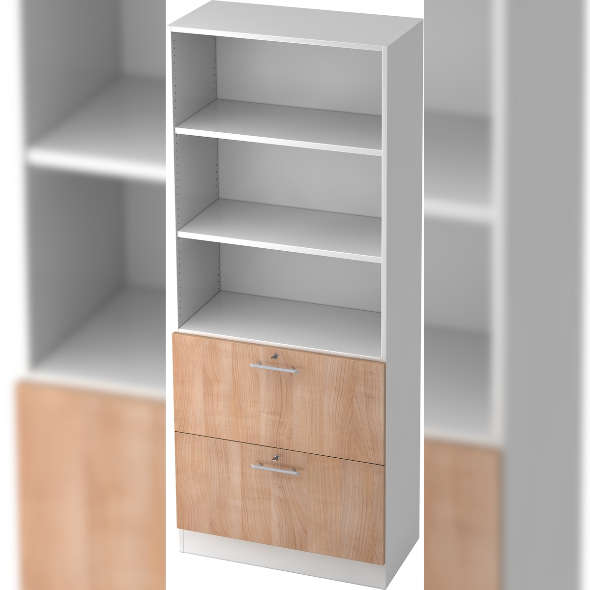 bümö office Aktenschrank mit Hängeregister-Schubladen abschließbar, Büroschrank Holz, 80cm breit in Weiß/Nussbaum - Hängeregistratur für Hängeordner,