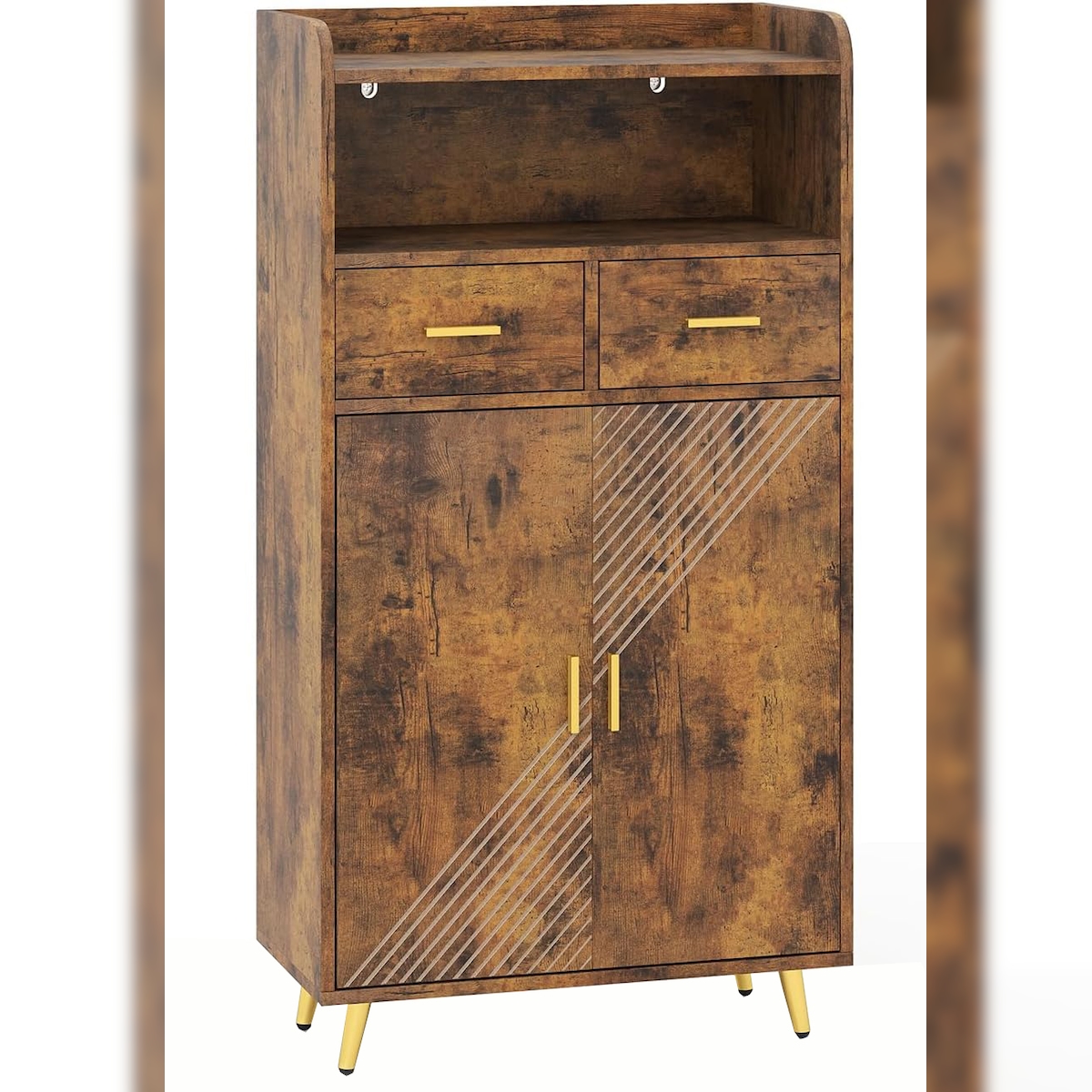 COSTWAY Multifunktionsschrank mit Doppeltür, 2 Schubladen, Verstellbarem Regal, Wohnzimmerschrank für Küche, Badezimmer, Flur