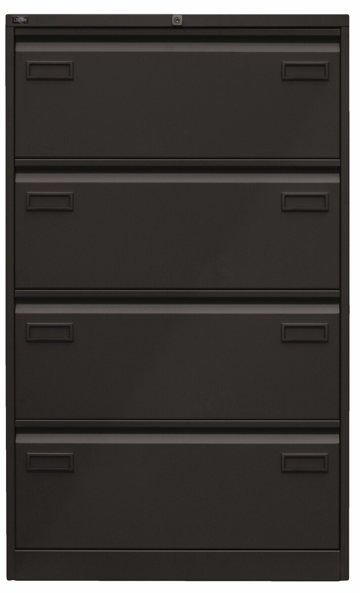 BISLEY Light Hängeregistraturschrank mit Schloss aus Metall in schwarz, 4 Schubladen, doppelbahnig - Hängeregisterschrank abschließbar,