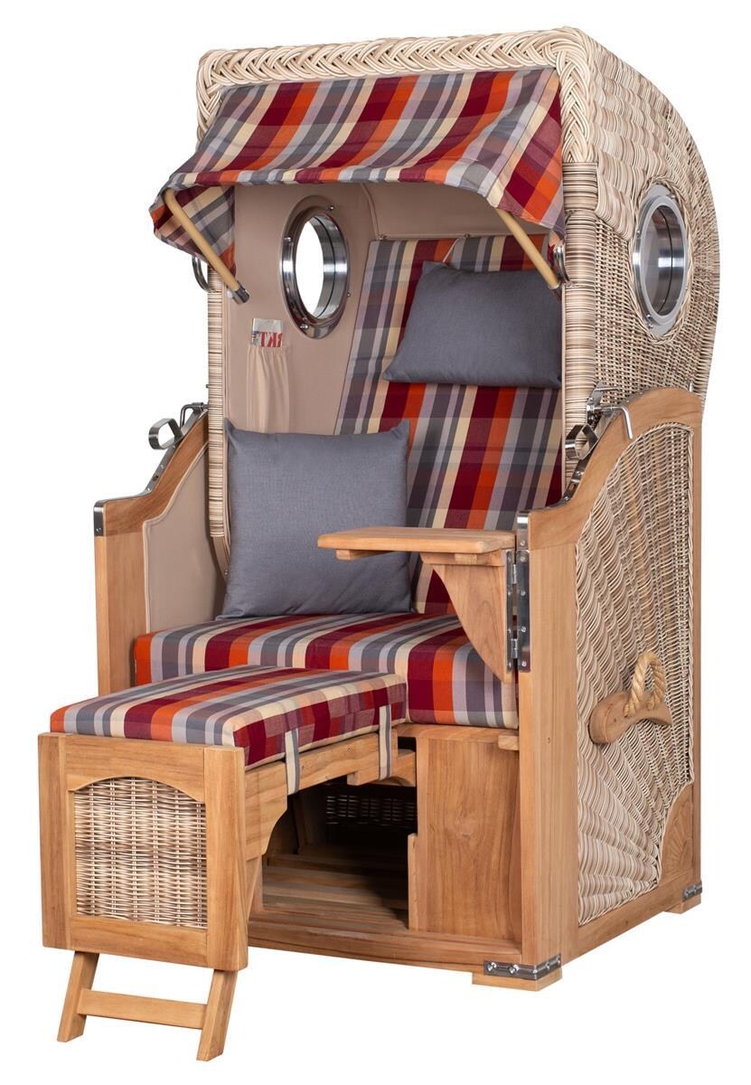 Mr. Deko Strandkorb - bene living - Ammersee Single Teak Bullauge - PE shell - Modell 584 - Einsitzer inkl. Liftersystem