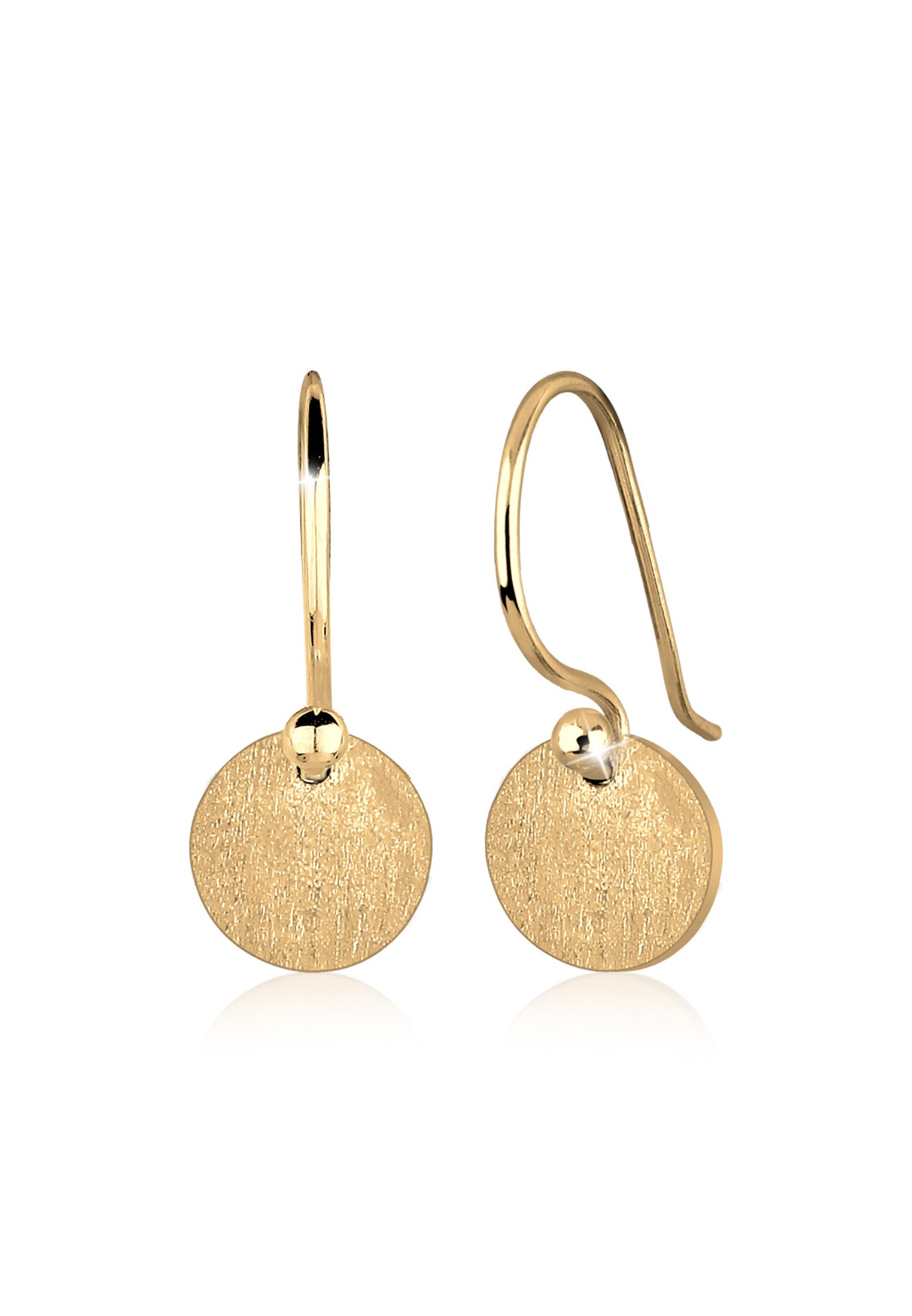 Paar Ohrhänger ELLI "Ohrhänge Plättchen Kreis Matt 925 Silber", gold, Ohrringe, Damen, OneSize, ohne Stein, Silber 925 (Sterlingsilber)