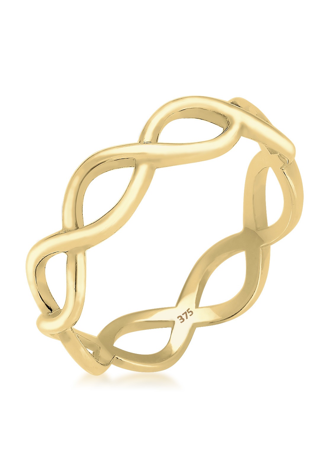Fingerring ELLI PREMIUM "Infinity 375 Gelbgold" Gr. 52, gold, Fingerringe, Damen, 52mm, ohne Stein, Gelbgold 375, 5mm