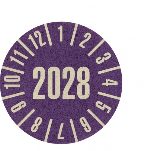 Dreifke® Prüfplakette 2028, violett, Graspapier, selbstklebend, Ø 30mm, 500 Stk.