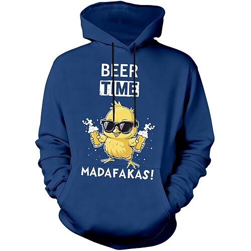 Felpa con cappuccio grafica per uomo - Beer Time Madafakas divertente stampa di gallina felpa con maniche lunghe