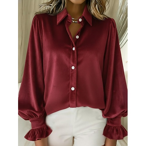 Capodanno Per donna Velluto Tinta unica Elegante Essenziale Manica Lunga Top Regolari Festa serale Ferie Uniformi da club Volant Blu Vino Oro Verde Azzurro Autunno Inverno