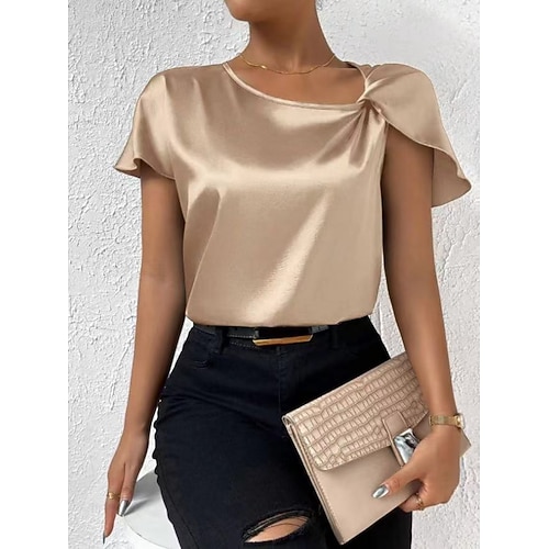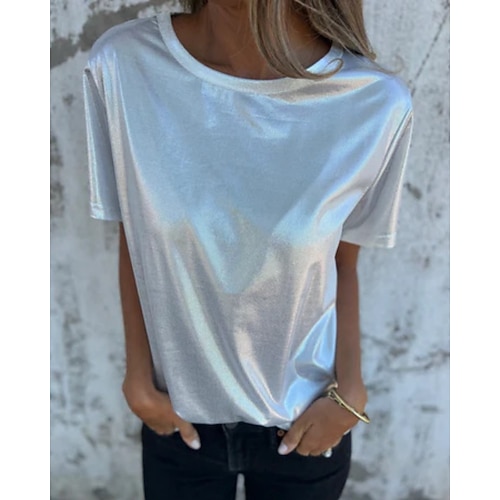 Per donna Blusa Tinta unica Elegante Casual Manica Corta Asimmetrico Top Regolari Quotidiano Paillettes Nero Bianco Viola Oro Verde Estate Primavera