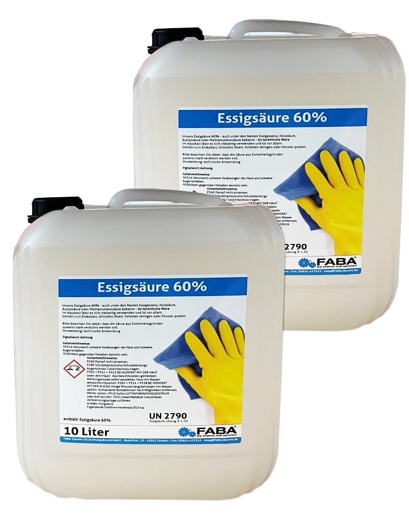 FABA Chemie Essigsäure 60% Essigessenz C2H4O2 Reiniger Entkalker 2 x 10 Liter