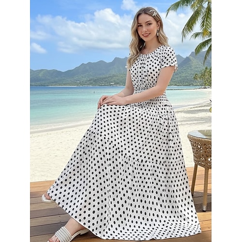Per donna Bianco Champagne Blu Estate Primavera Abito maxi Abito a trapezio Vacanza Casual Spiaggia Formale Matrimonio Abbigliamento Quotidiano Vestibilità regolare Floreale Grafico Girocollo