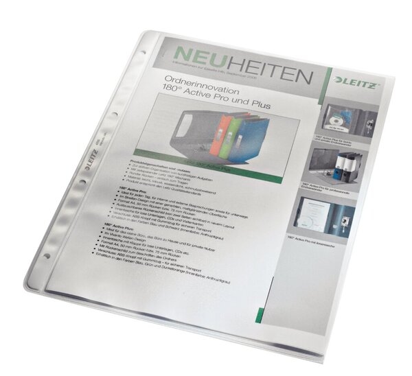 Prospekthülle A4, oben offen, genarbt, dokumentenecht, 4-fach Lochung, PP-Folie, Folie: 0,13mm, m.Daumenausschnitt, Inhalt: 100 Stück, Maße: 230x305mm