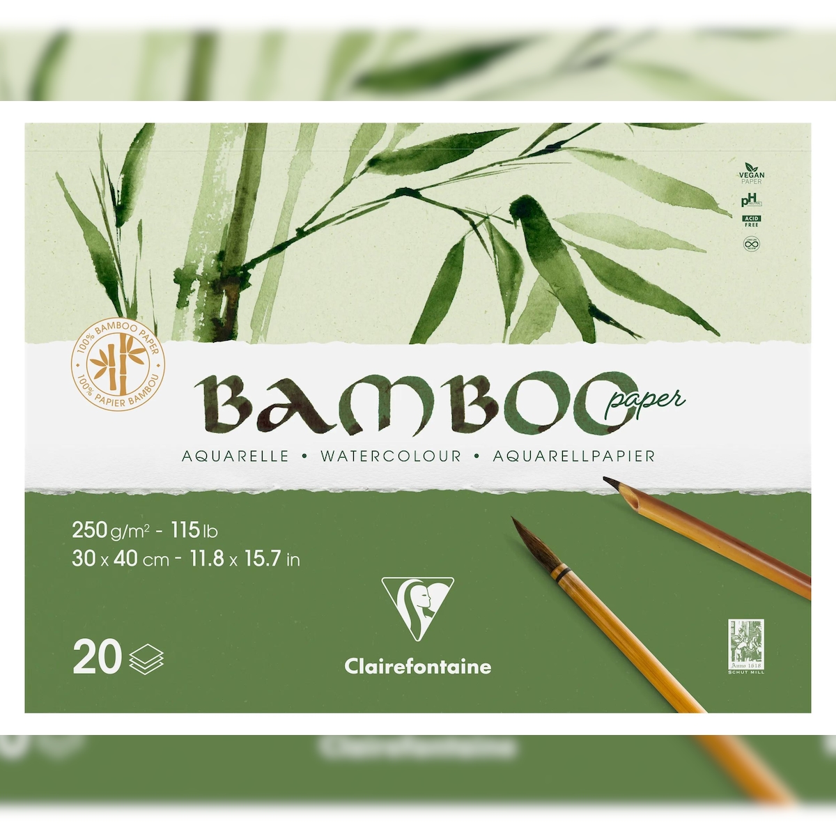Clairefontaine 2x Bamboo, 2-seitig geleimter Block mit 20 Blatt Bambuspapier, 30x40 cm, 250g - 975914C